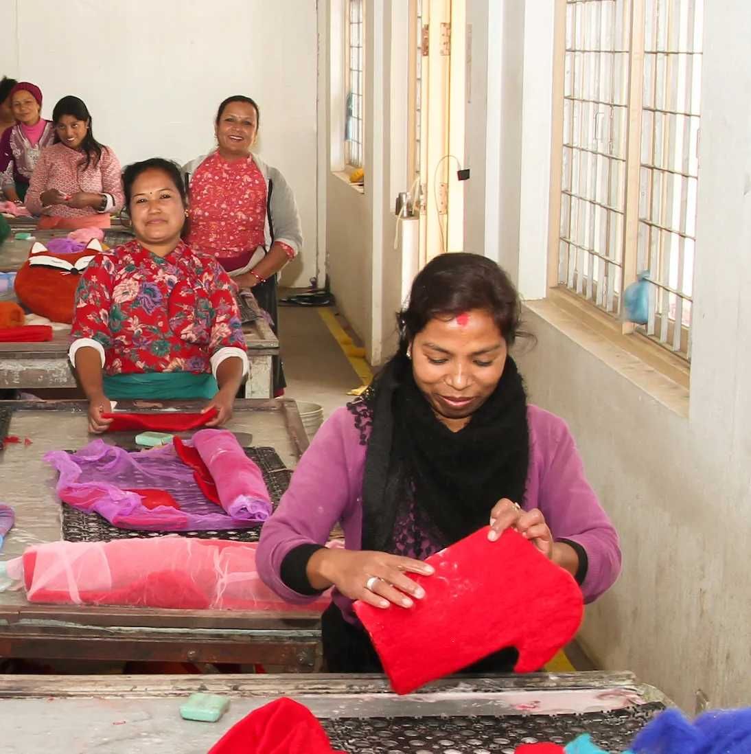 Nos articles en feutrine sont conçus par Dille & Kamille et confectionnés à la main par des femmes au Népal à partir de laine de mouton néo-zélandaise. Notre fournisseur d'articles Fair Trade en feutrine les aide ainsi à améliorer leur situation sociale, économique et familiale. En plus d'un revenu régulier, il leur offre un lieu de travail sûr.