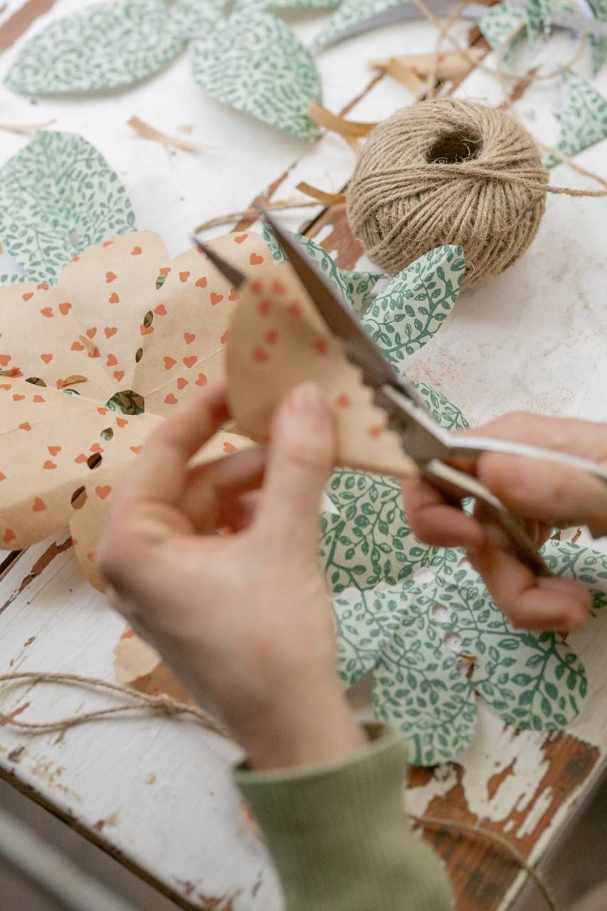 Il vous reste quelques jolies serviettes de table en papier ou des chutes de papier d'emballage ? Ne les jetez pas, mais découpez-les en fleurs pour en faire une guirlande printanière pleine de gaieté !