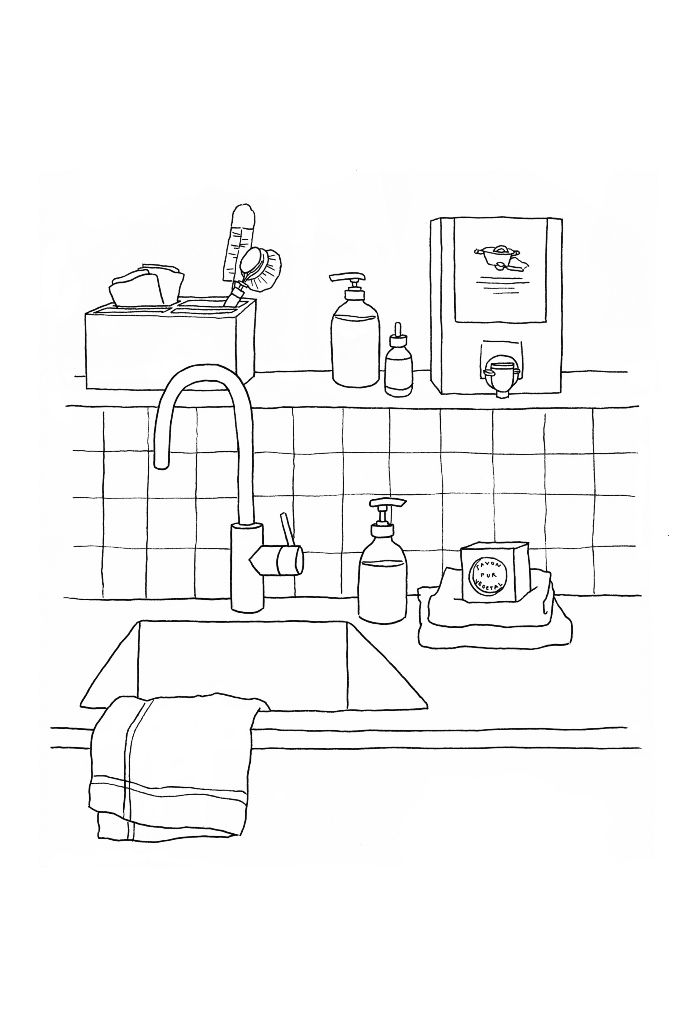 - Remplissez une bouteille en verre ou un distributeur de savon à partir du cubi ménager. Vous pouvez aussi remplir un bouchon doseur et le mettre directement dans la machine à laver ou le verser dans votre seau de nettoyage.
