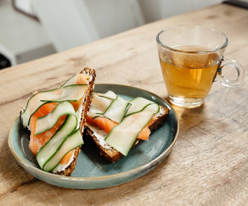 Qui dit high tea dit mini sandwiches. Le thé noir, par exemple Darjeeling, s’accorde à merveille aux pâtisseries, scones, chocolats et tartes, et aux plats légers comme les sandwiches au concombre et saumon. Bien sûr, vous pouvez aussi servir cette combinaison dans le cadre d’un repas avec accords thé et mets.