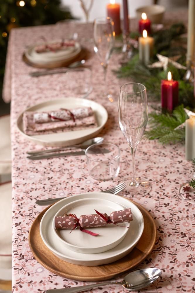 Notre conseil : déposez sur chaque assiette un cracker de Noël. Les crackers de Noël sont une tradition britannique. À la fin du repas, ouvrez le cracker avec votre voisin.e de table en tirant chacun à une extrémité. Le cracker dissimule une couronne en papier et un jeu de cocotte. Une façon amusante et conviviale de clôturer le dîner.