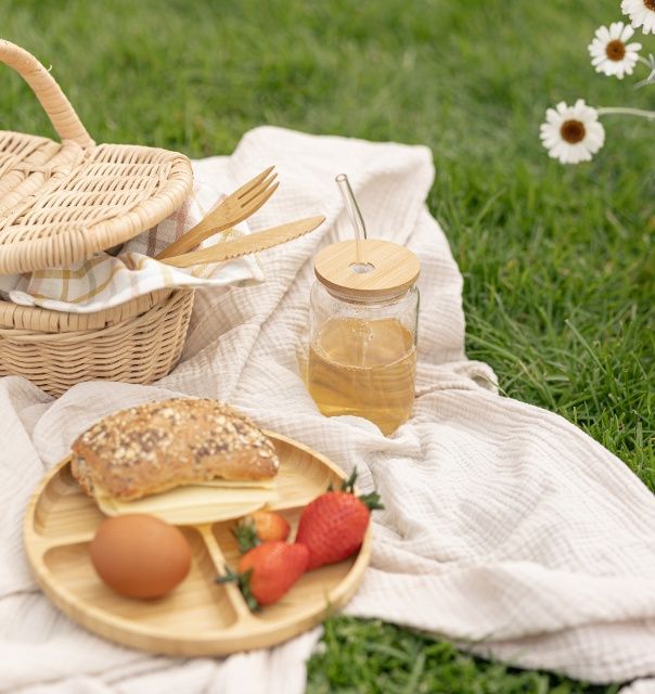 Grâce à nos alternatives durables au plastique jetable, organiser un pique-nique sans plastique devient un jeu d'enfant. Optez, par exemple, pour notre vaisselle en émail : un matériau solide, léger et doté d'un revêtement résistant aux rayures. Idéal donc pour un pique-nique (et pour des vacances au camping) ! Nos assiettes en bambou constituent également une très bonne alternative.