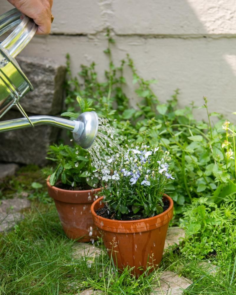 Si vous arrosez vos plantes avec de l’eau du robinet, remplissez un arrosoir et laissez l’eau prendre la température extérieure pendant une heure. Le choc thermique est néfaste pour les racines de vos plantes.