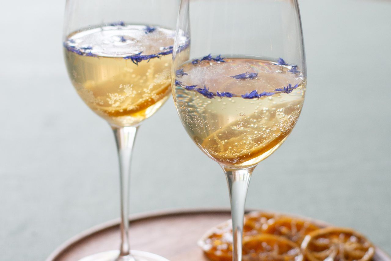 - Garnissez de zestes de citron (confit) et de pétales de bleuet.