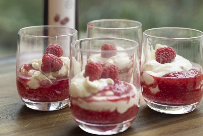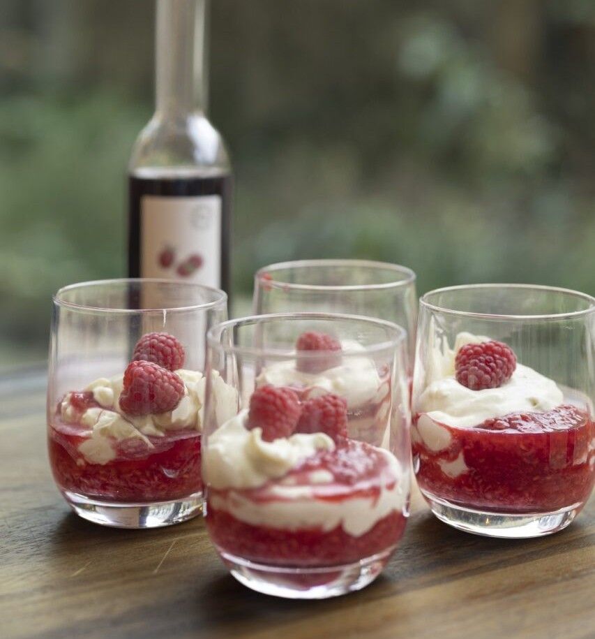- Disposez la crème et la compote de framboises en couches dans les verrines.