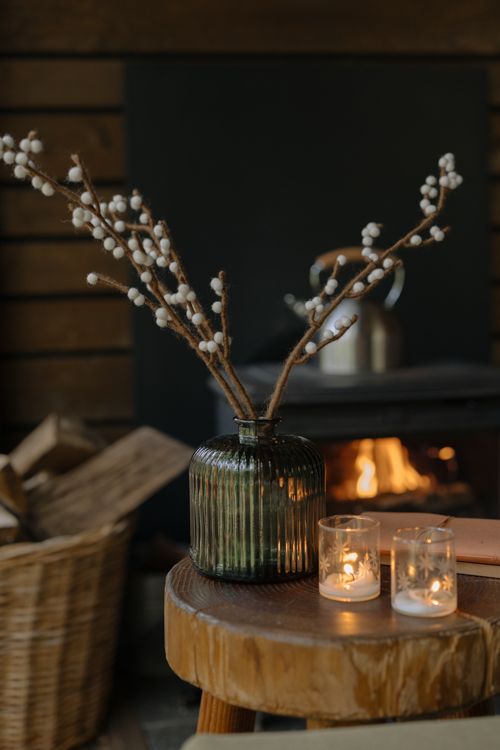 La cabane de Noël de Dille & Kamille invite à venir se promener en forêt, à se retrouver au coin du feu, à manger ensemble autour d'une table joliment dressée et à contempler la nature depuis le canapé à travers les grandes fenêtres.